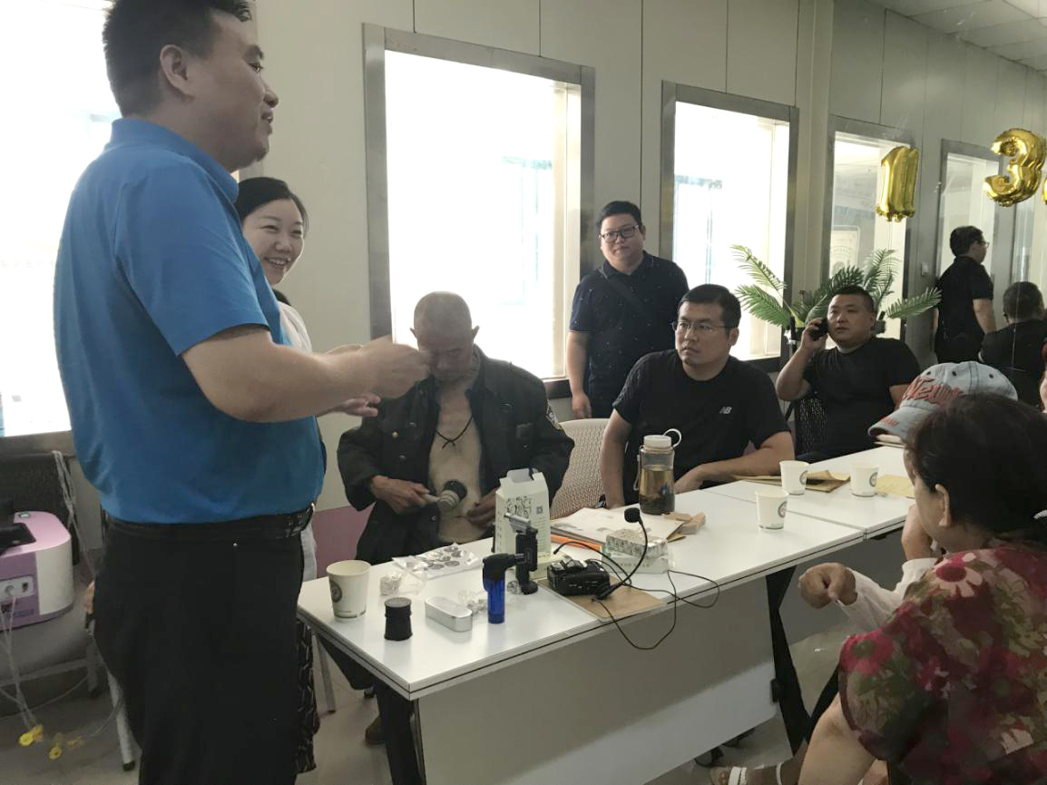 和记娱乐健康科技杨龙举董事长现场为优秀妇幼保健员针对艾灸器具的最新发展,及临床使用做了详细的介绍,并进行现场操作演示。