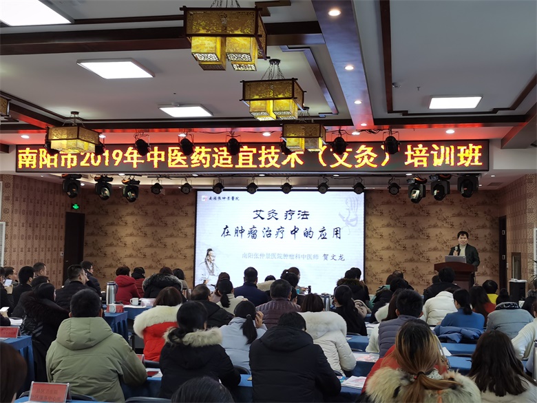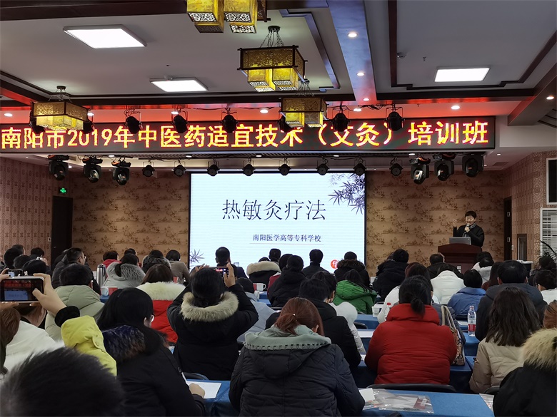 2019年12月26日,“南阳市2019年中医药适宜技术(艾灸)培训班”成功举行,来自南阳全市直(管)医疗机构和各县区医疗机构220余名医务精英参加了本次培训。本次会议由南阳市中医药发展局主办,南阳市中医药学会承办,旨在充分发挥中医药(艾灸)适宜技术在基层防病、治病中的优势和作用,进一步推动中医药服务进基层工作的开展,详细介绍了艾灸的原理和功效、热敏灸疗法、艾灸的肿瘤治疗、以及常见病的应用及治疗操作,并进行现场操作和诊断治疗。