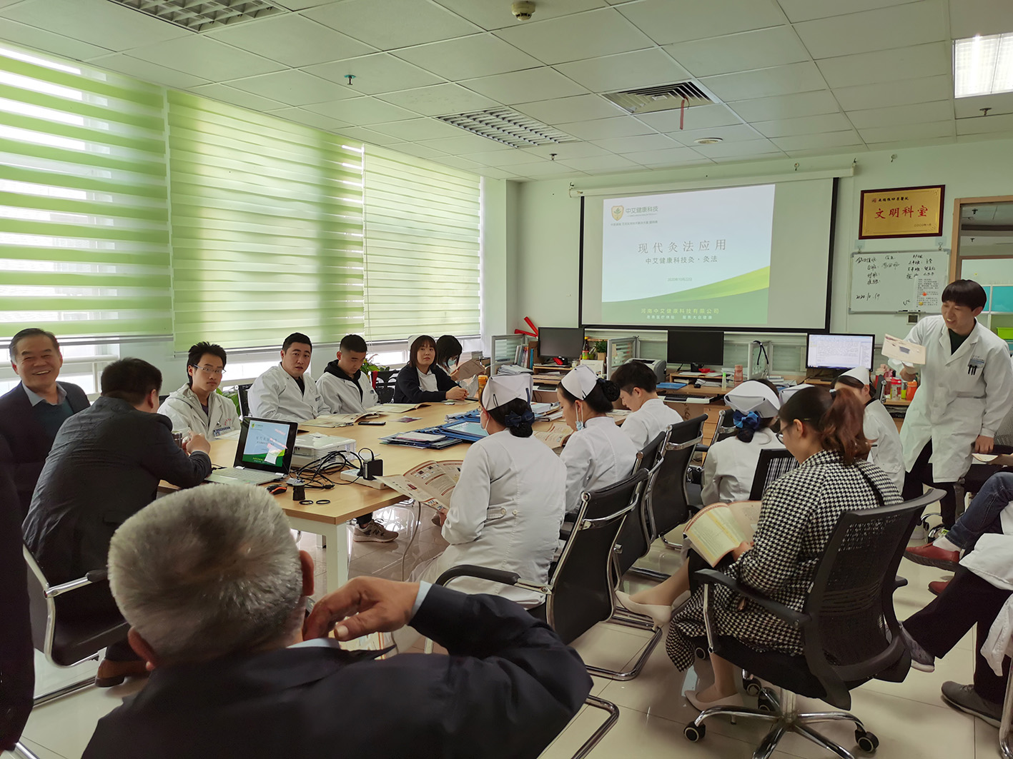和记娱乐(AG中国)官方网站 董事长杨龙举先生应邀为南阳市中医院、仲景医院等优秀医护人员针对现代灸法的应用进行了详细的培训。